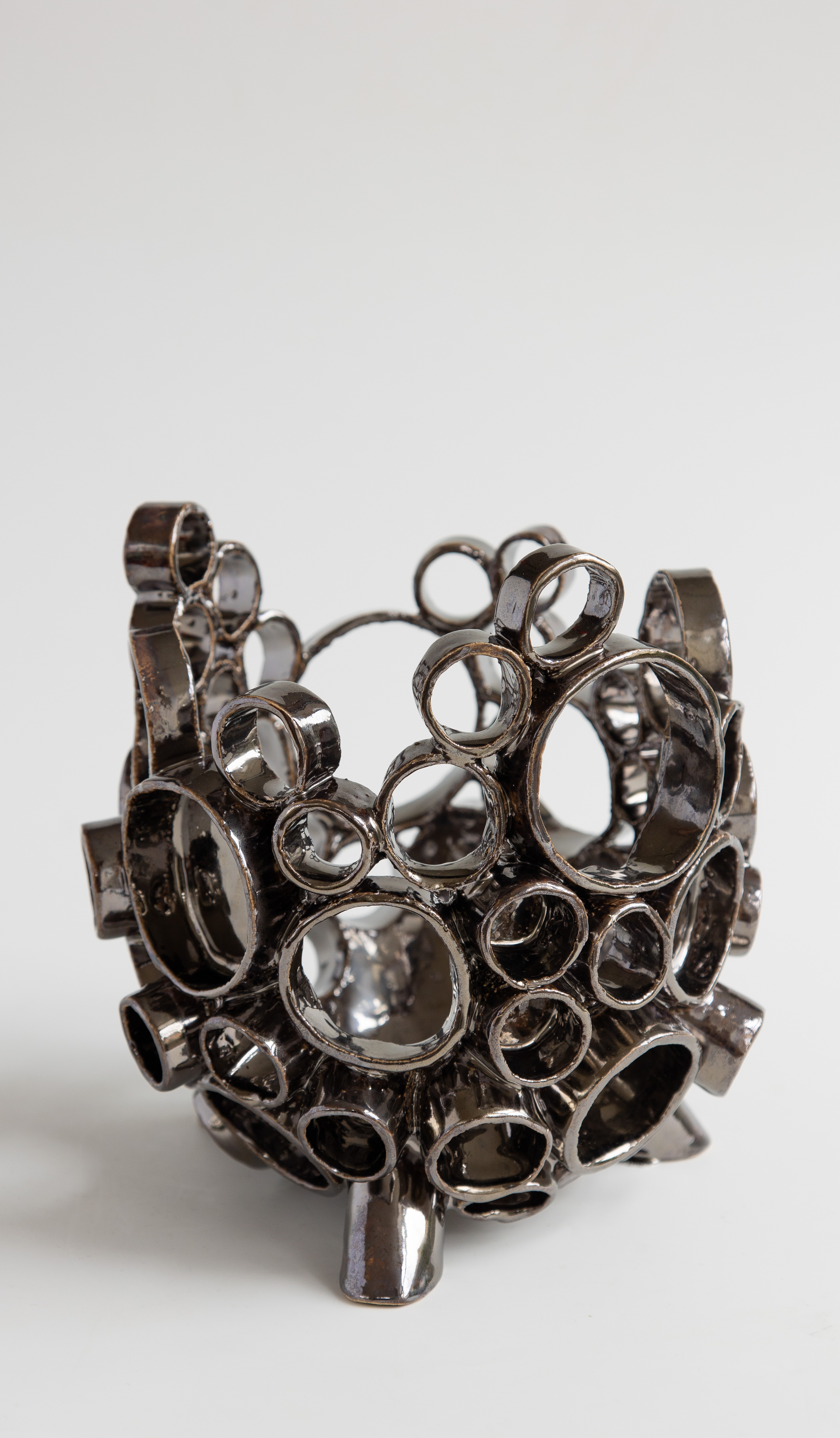 Zowel met de hand als met draaien maak ik vormen, door deze technieken samen te voegen ontstaan er sculpturen die tijdloos in de ruimte staan.