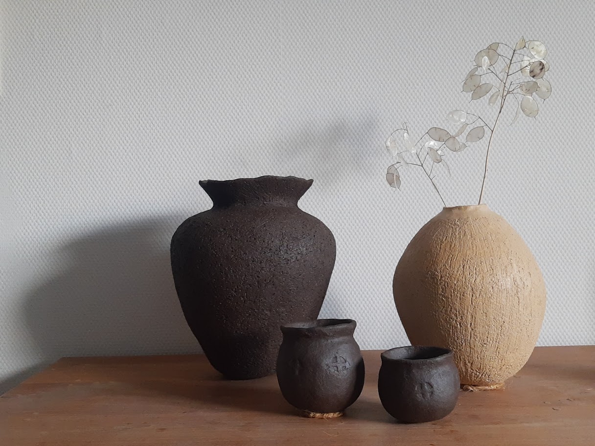 30 jaar geleden volgde ik een cursus boetseren. Mijn eerste kennismaking met klei. Van de ervaren kunstenares heb ik veel geleerd, vooral over handvormen en het opbouwen van klei tot een mooi vrijstaand werkstuk. Het werk werd nooit geglazuurd, het ging om de puurheid van de klei.